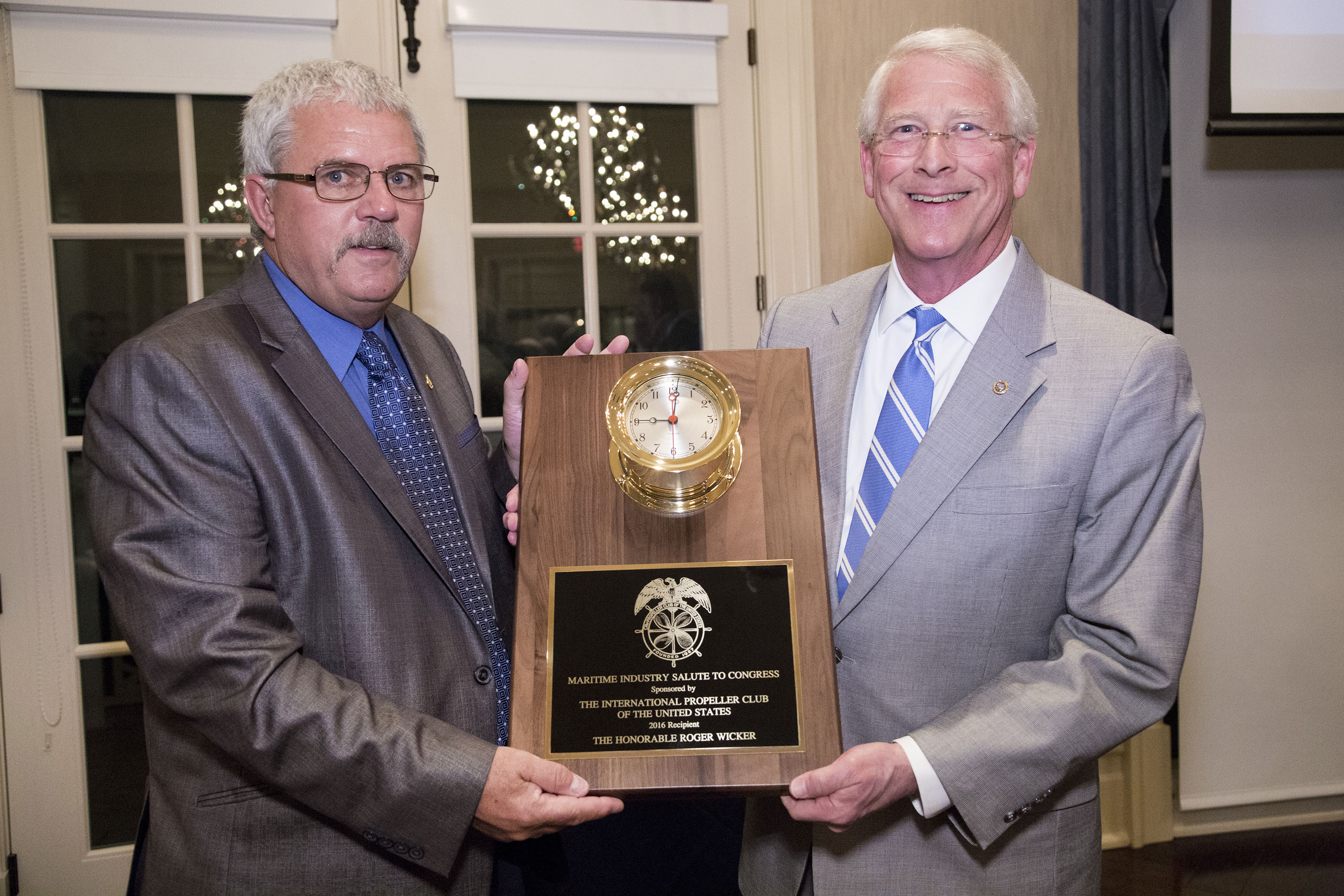 WASHINGTON – U.S. Senator Roger Wicker, R-Miss., has received the 32nd annual Salute to Congress Award by the International Propeller Club of the United States. The award recognizes a member of Congress each year for supporting the maritime industry and merchant marine. Wicker is a senior member of the Senate Committee on Commerce, Science, and Transportation, which has jurisdiction over interstate commerce, the Coast Guard, inland waterways, and the merchant marine.“I appreciate this recognition by the International Propeller Club and the work it does on behalf of our merchant marine,” Wicker said. “The value of the U.S. maritime industry cannot be overstated. Our mariners, shipyards, and Coast Guard are essential to keeping our economy strong and protecting our nation. I will continue to support efforts that advance this crucial part of America’s transportation system.”