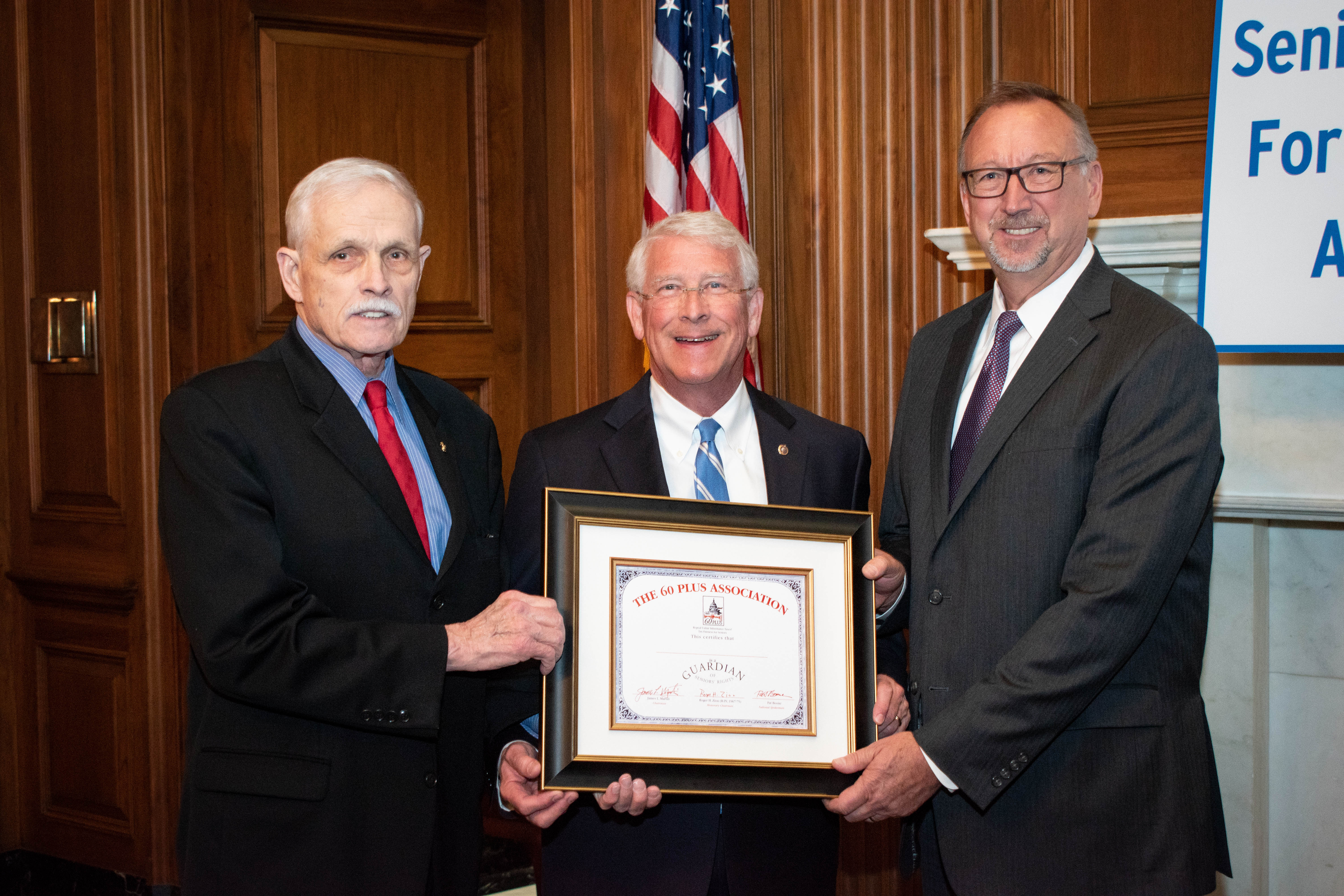WASHINGTON - U.S. Senator Roger Wicker, R-Miss., this week received the 60 Plus Association’s “Guardian of Seniors’ Rights” award, which recognizes members of Congress who fight on behalf of senior citizens.